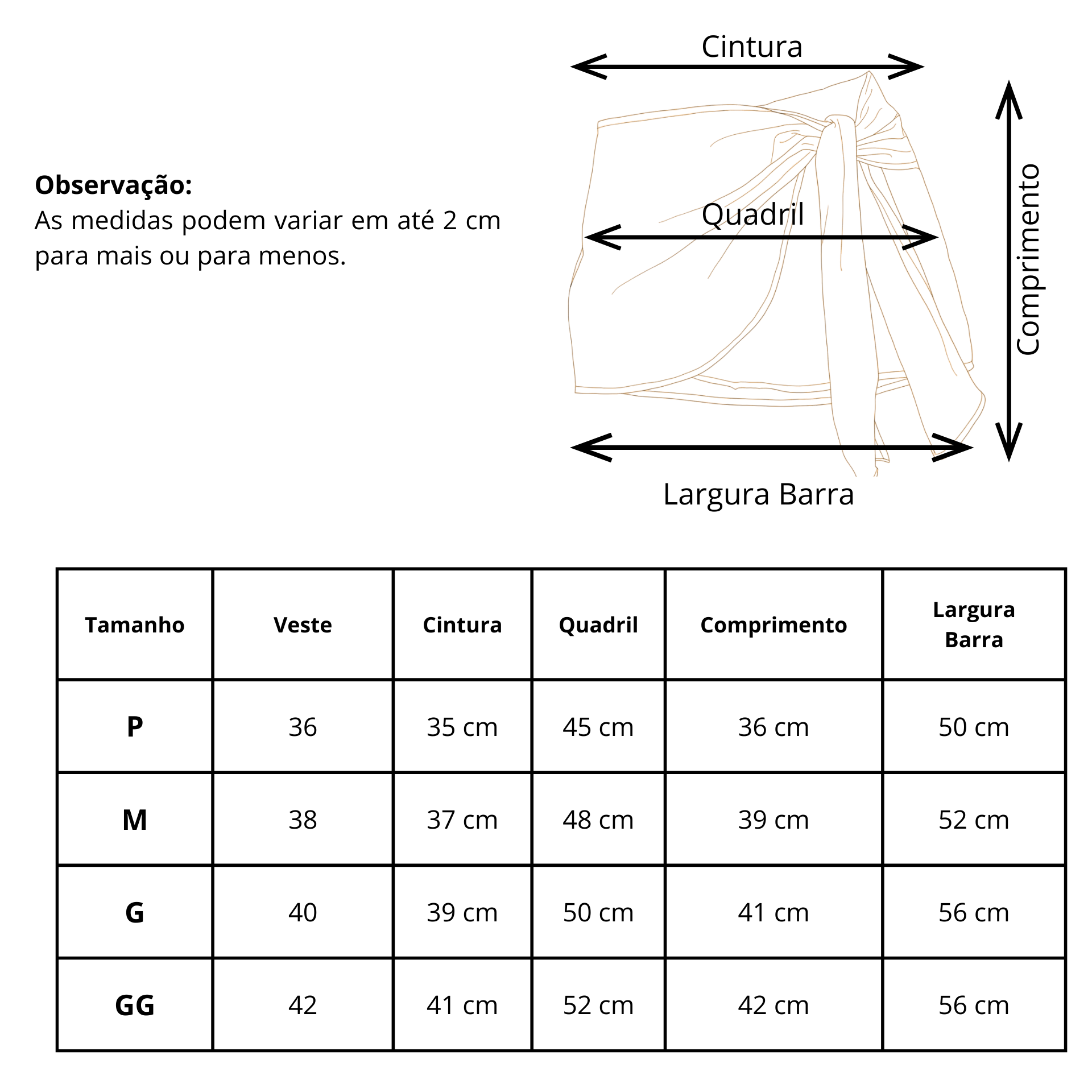 Possui saia na frente e atrás, com short interno costurado, oferecendo mais segurança e liberdade de movimento. Conta com zíper invisível na lateral e alças com amarração lateral, que trazem charme e ajuste delicado ao visual.